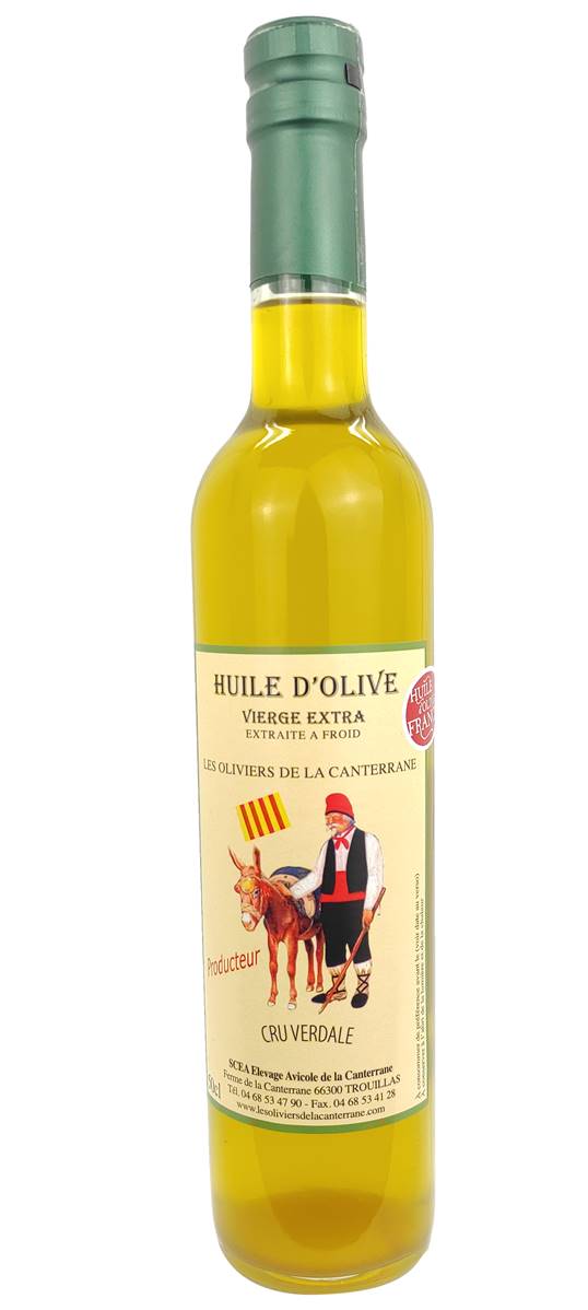 Huile d'olive vierge extra monovariétale variété Verdale en bouteille de 50 cl Couleur : verte Arômes subtils d'artichaut - Caractéristiques : Huile onctueuse et douce obtenue à partir d'olives de variété Verdale - Utilisations : de préférence crue. Idéale pour les salades vertes, les carpaccio, elle saura charmer les amateurs d'huiles d'olive fruité vert, sans ardence ni amertume. - Variété originaire de notre département |